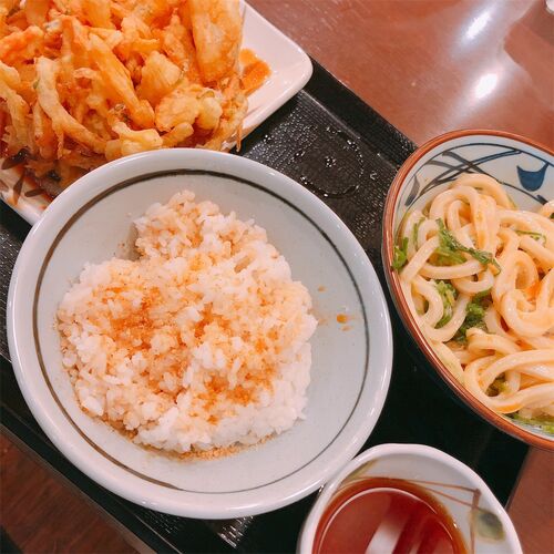 どうも!みなさん! こんにちは(^-^) 今回も 友人と打ち合わせしながら食事♪ ということで テーブル席がある店ということで 丸亀製麺でうどんと丼を食べてきました\(^o^)/ こちらです♪ 釜玉うどんと野菜のかきあげとご飯を注文し 野菜のかきあげとご飯はか…